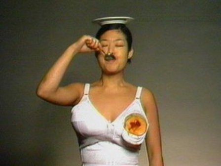 La scena è questa: donna orientale tale Patti Chang, ha addosso una canotta bianca attillata. Ha due tette grosse così – strano per una orientale – e un piatto di ceramica appoggiato sul centro della testa.